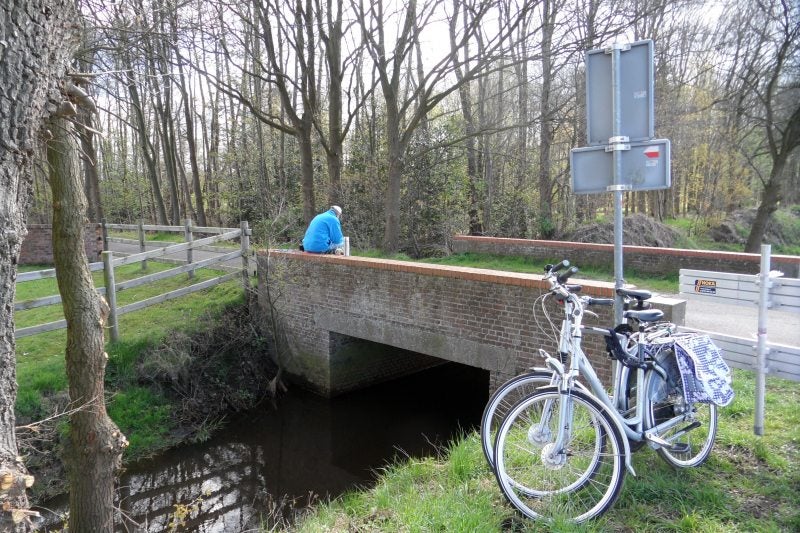 bij de Markbrug pal aan de grens bij grenspaal 218, de eerste van onze route die op de foto gaat!