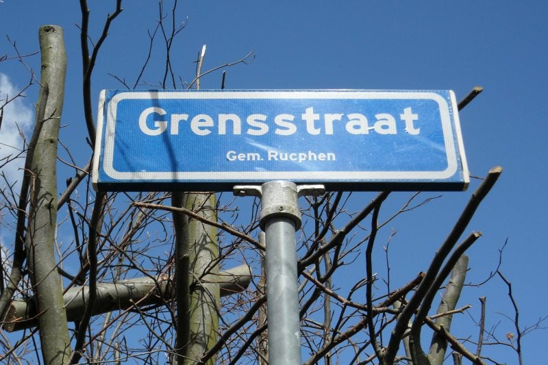 Het Grenslandpad is een Lange Afstands Wandeling die ook gemarkeerd is met de internationale strepen: rood/wit onder elkaar.